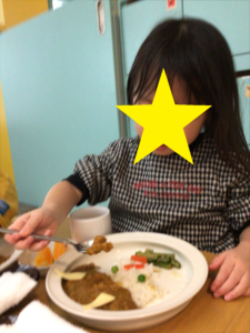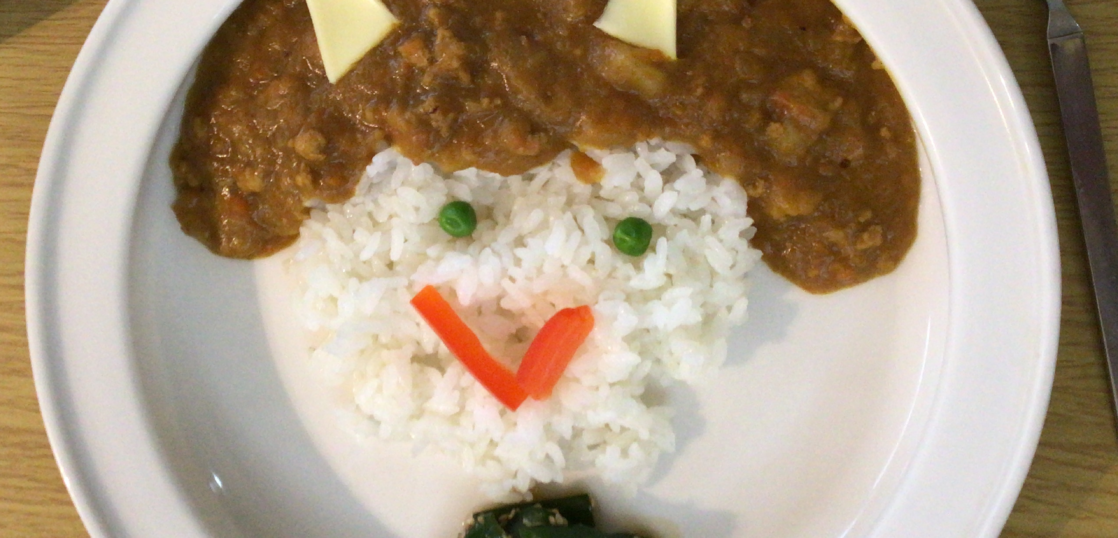 2月3日の節分に向けて前日の給食では「おにカレー」を食べて鬼退治の準備はばっちり!